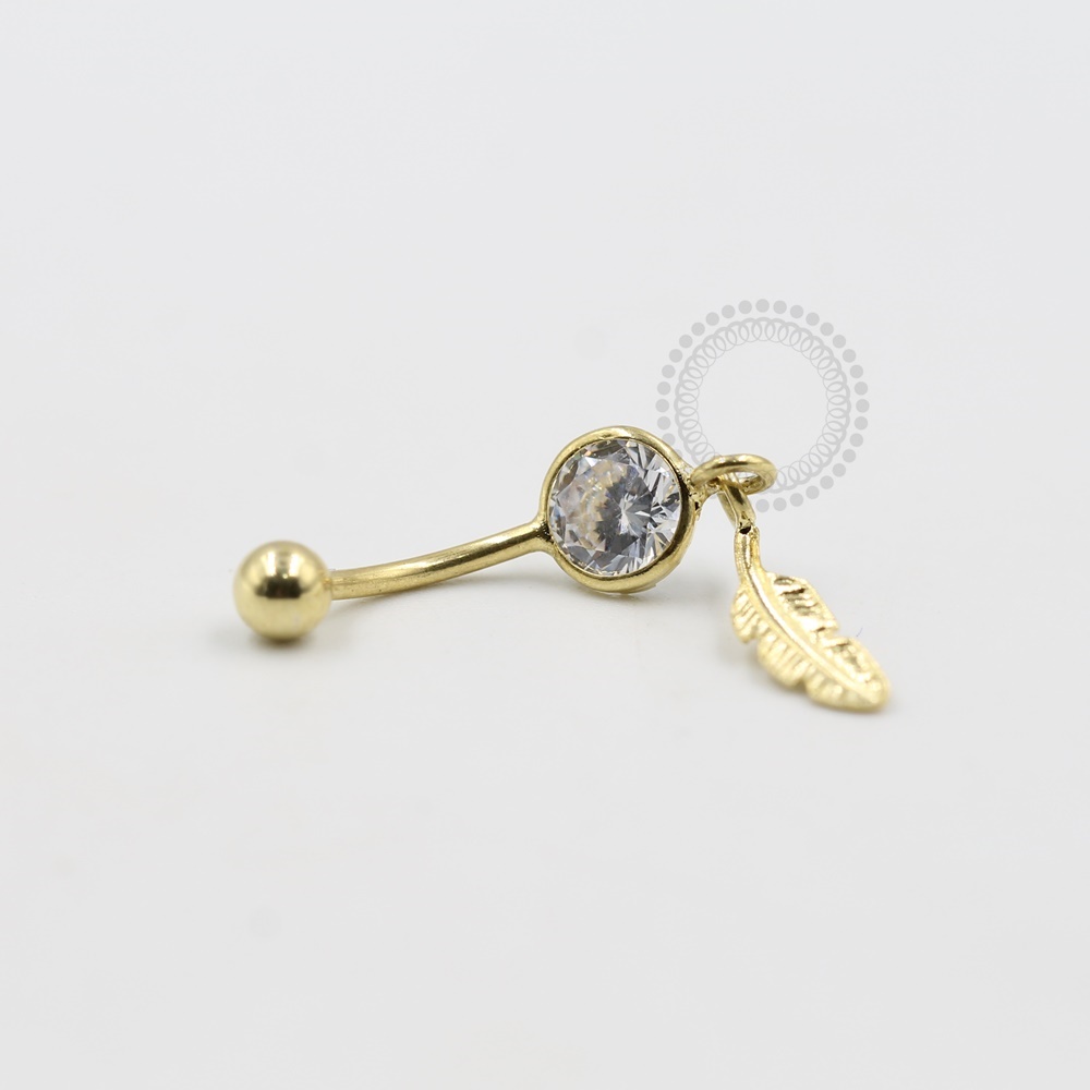 BN11 Navel Zirconia Pingente Pena Banho Ouro