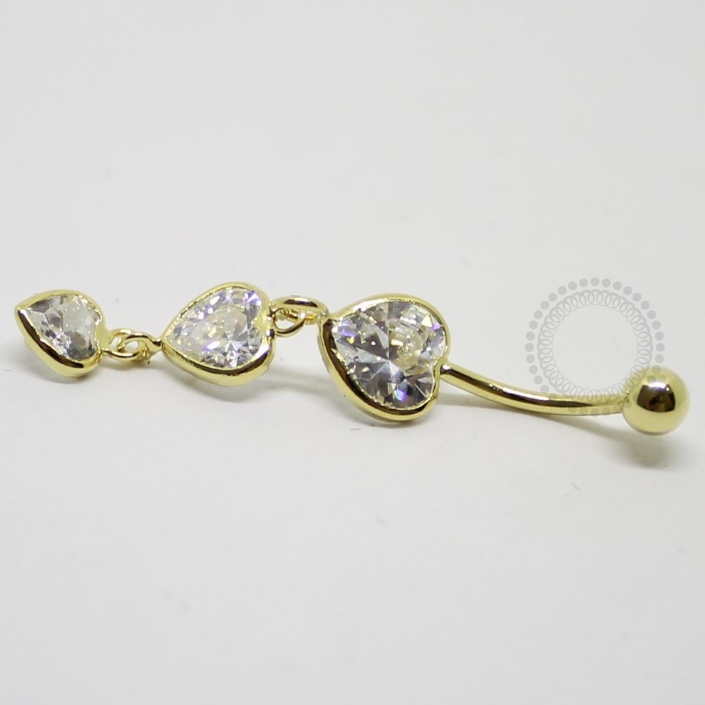 BN13 Navel Pingente 3 Corações CZ Banho Ouro