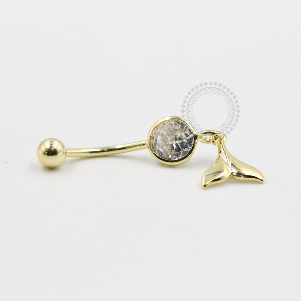 BN14 Navel CZ Pingente Calda Baleia Banho Ouro