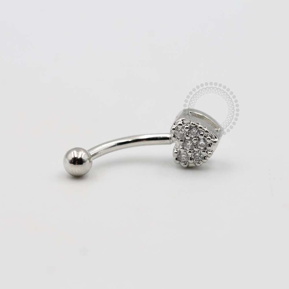 BN30 Navel Coração Cravejado CZ Banho Ródio