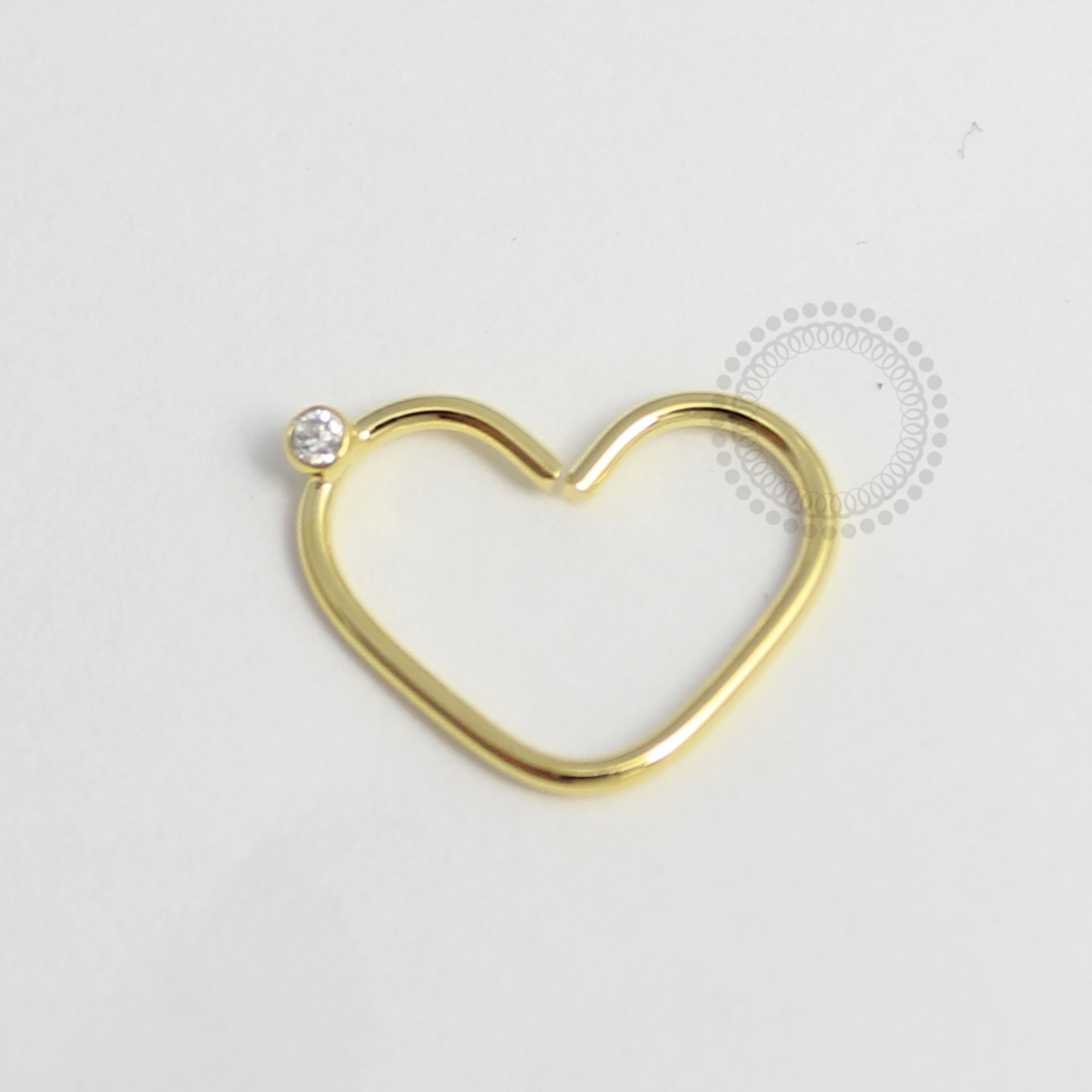 CR22 Coração Daith Fino Ponto de Luz Banho Ouro
