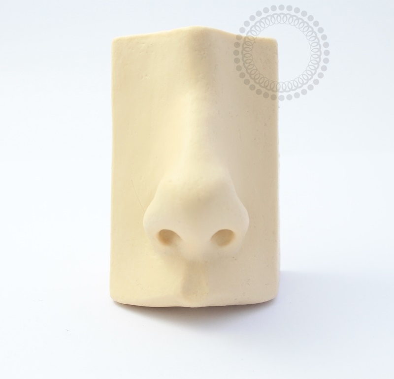 Descrição: O expositor de nariz de silicone é projetado para ficar em pé sem suporte, ideal para exibir piercings da aba nasal e septo. É útil em vitrines e para treinamento de piercers. Feito de material flexível, é altamente resistente, mas requer cuidados ao fazer perfurações: evite rasgar ao não perfurar muito próximo das bordas e não puxe a peça após a colocação. Para limpeza, basta lavar com água morna e detergente neutro. O uso se assemelha a um nariz real, permitindo perfurações em toda sua extensão para exposição de peças.