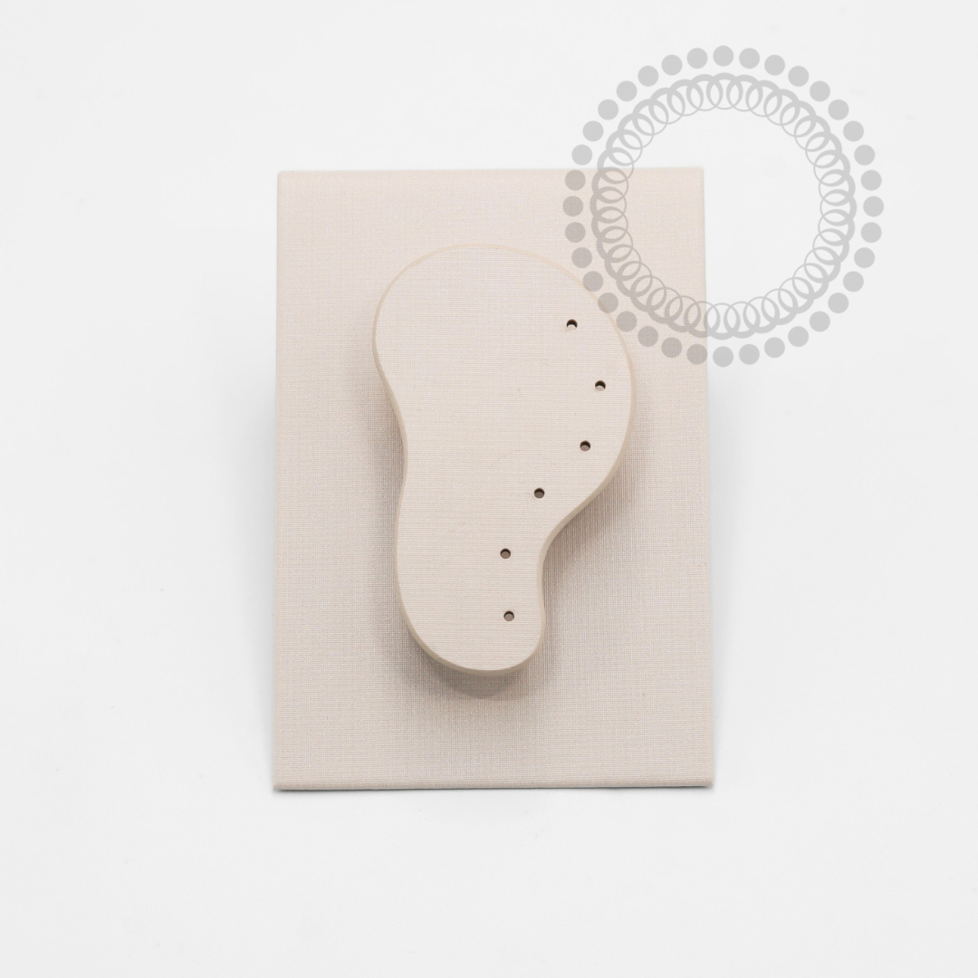 Descrição: Expositor confeccionado em material facto, combina elegância e funcionalidade. Seu design minimalista apresenta três seções com orifícios estratégicos para organizar e exibir piercings de forma clara e acessível. A orelha central, equipada com um ímã, pode ser facilmente removida, proporcionando versatilidade na apresentação. Ideal para estúdios e lojas, garante que cada peça seja facilmente visualizada e apreciada pelos clientes.