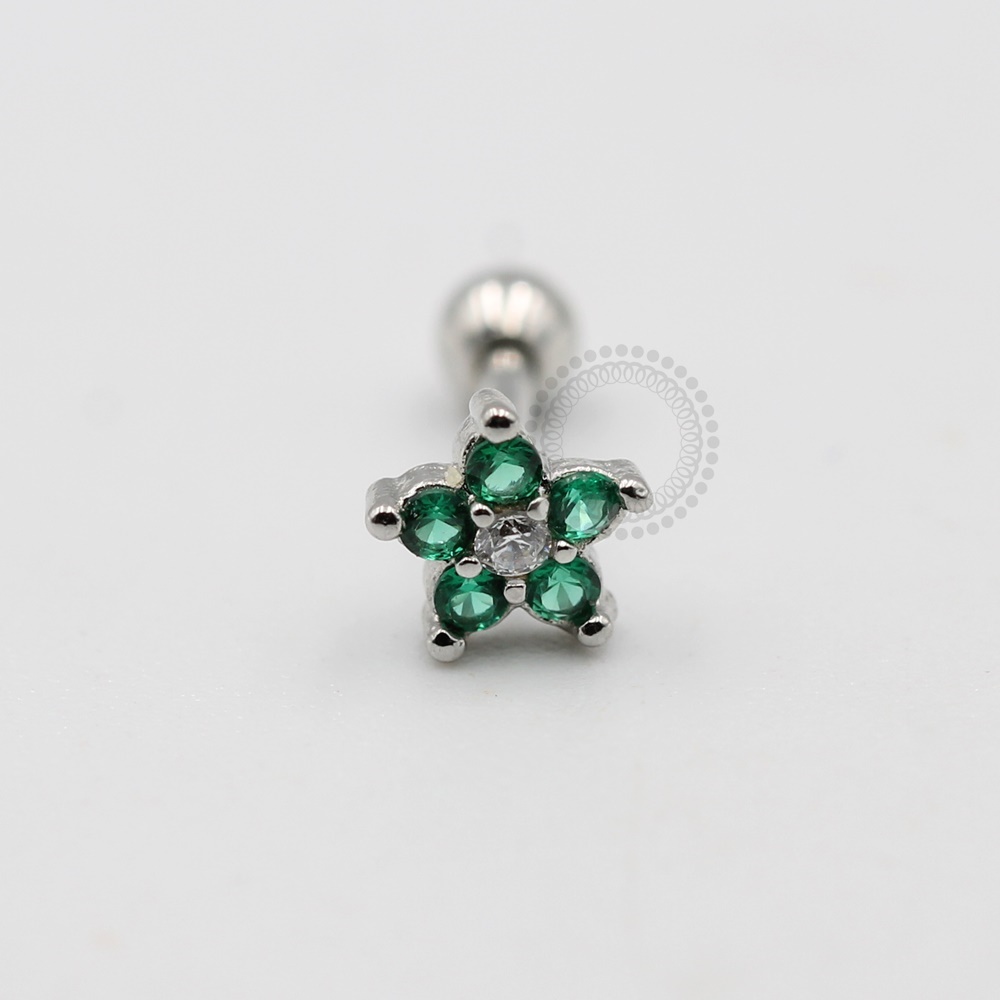 MBA70 Microbell Flor CZ Verde Banho Rodio
