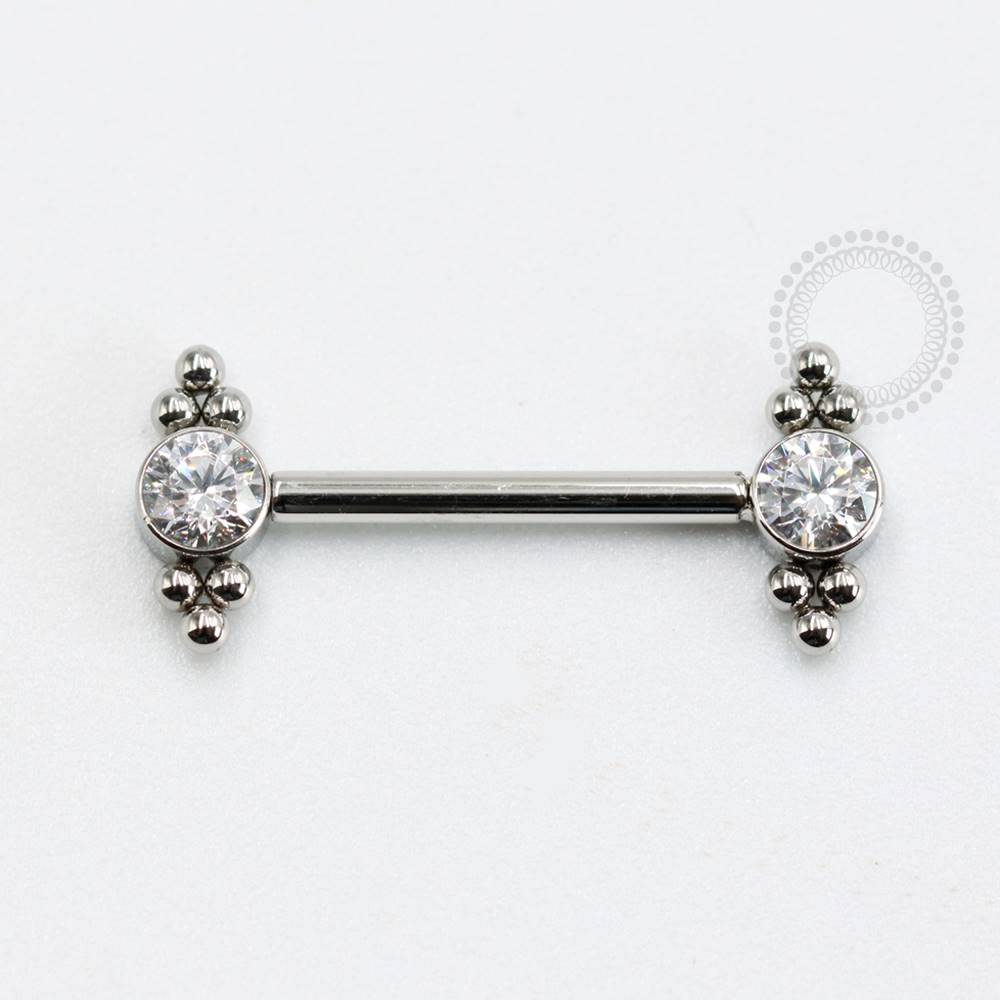 Descrição:Este piercing para mamilo possui 2 pedras de zircônia cúbica, oferecendo um brilho sofisticado e elegante. Feito em aço 316L, é ideal para quem procura durabilidade e resistência à corrosão.