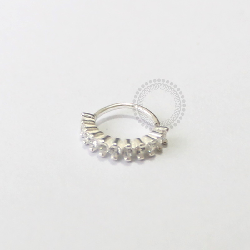 Descrição: Ideal para cartilagem, lobulo, aba nasal, entre outros piercings, oferecendo um ajuste confortável e seguro. É uma joia cheia de estilo.