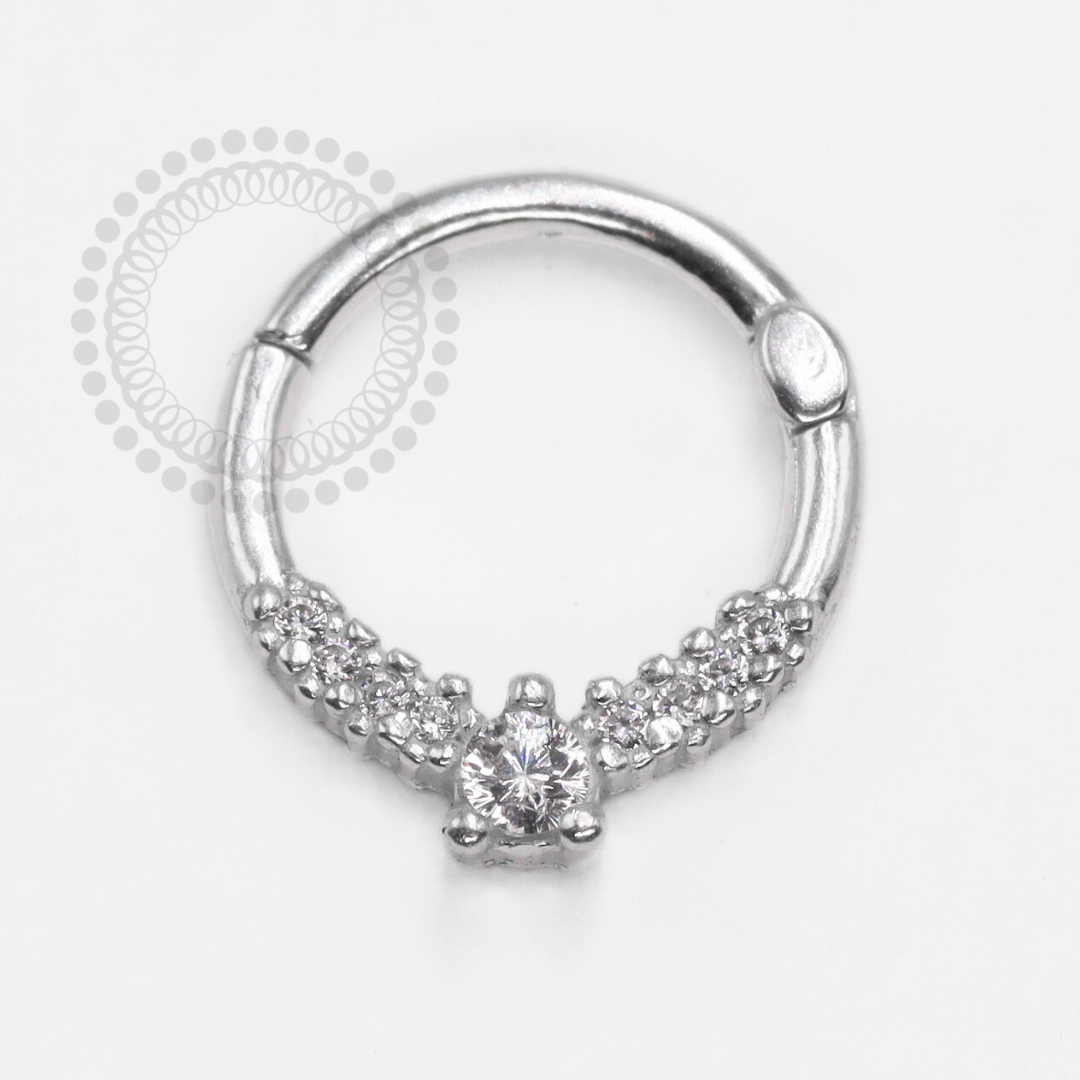 Descrição: Ideal para, septo, daith, cartilagem, lobulo, entre outros piercings, oferecendo um ajuste confortável e seguro. É uma joia cheia de estilo.