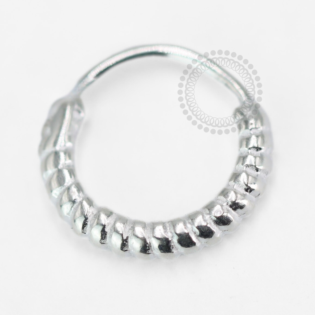 Descrição: Ideal para aba nasal, septo, daith, cartilagem, lobulo, entre outros piercings, oferecendo um ajuste confortável e seguro. É uma joia cheia de estilo.