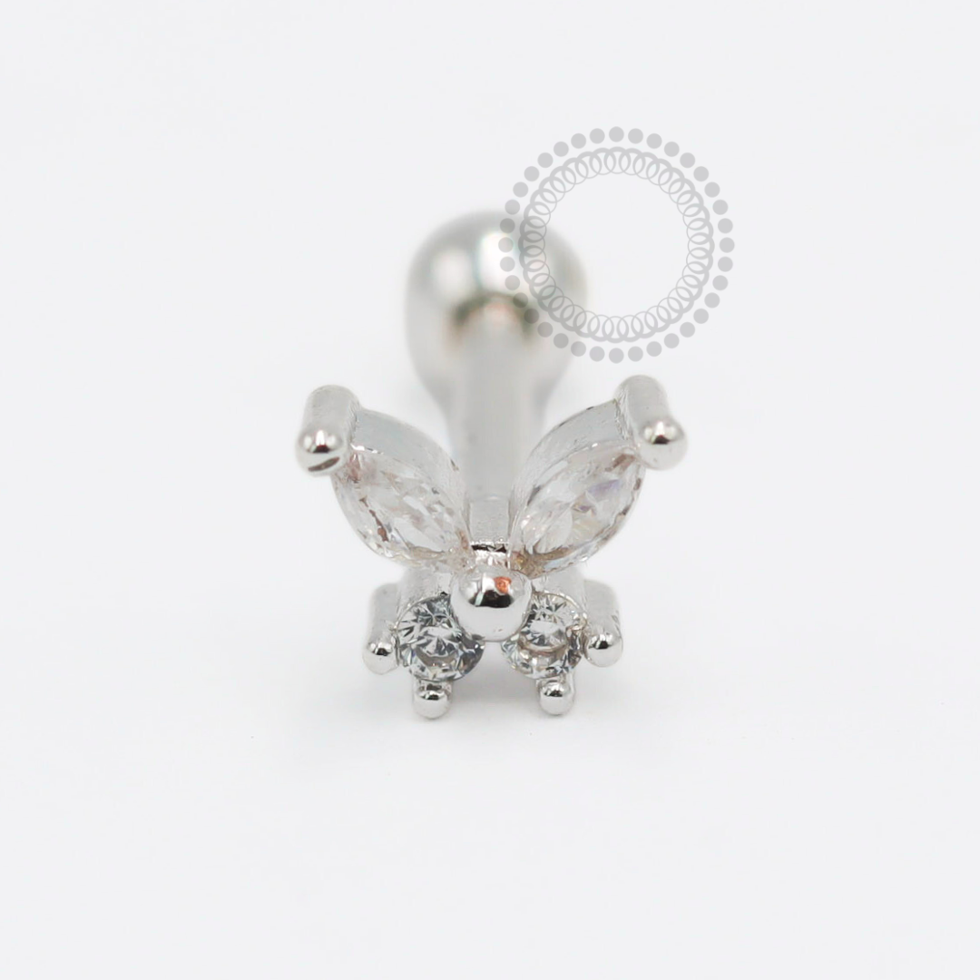 Descrição: Ideal para cartilagem, lóbulo, helix, tragus, entre outros piercings, oferecendo um ajuste confortável e seguro. É uma joia cheia de estilo.