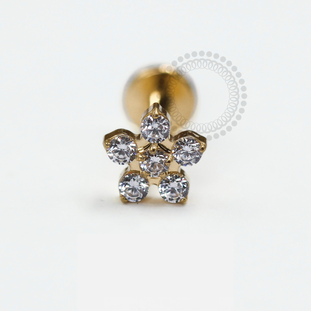 PVD118 Labret Flor Cravejada Aço PVD Gold