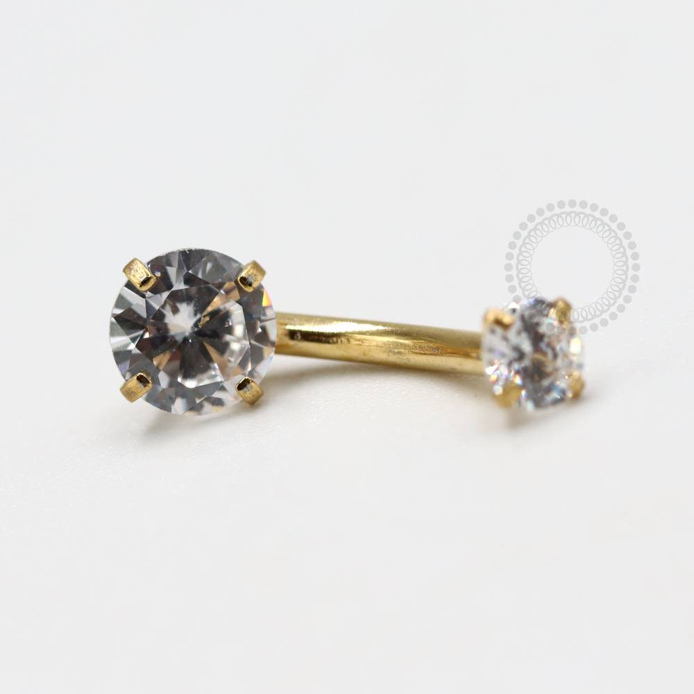 Descrição: Ideal para perfuração de umbigo, oferecendo um ajuste confortável e seguro. É uma joia cheia de estilo. O design curvado da haste permite um melhor encaixe na anatomia do corpo, minimizando o risco de irritação. Além disso, é fácil de limpar e manter, o que é essencial para garantir a saúde da perfuração.