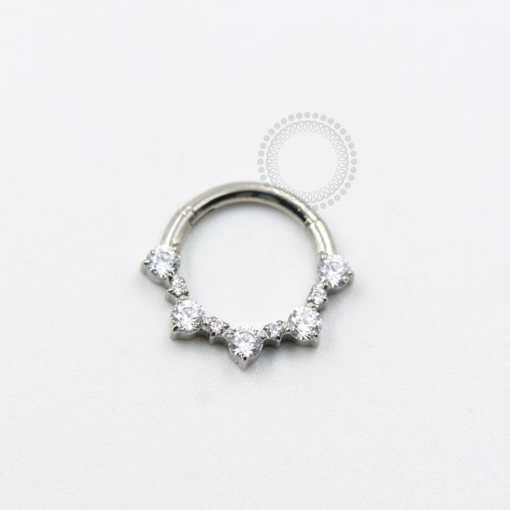 Descrição: Ideal para cartilagem, septo, daith, entre outros piercings, oferecendo um ajuste confortável e seguro. É uma joia cheia de estilo.