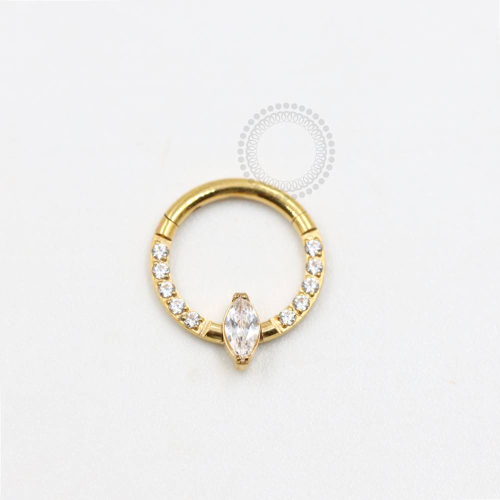 Descrição: Ideal para cartilagem, lóbulo, helix,septo, daith, entre outros piercings, oferecendo um ajuste confortável e seguro. É uma joia cheia de estilo.