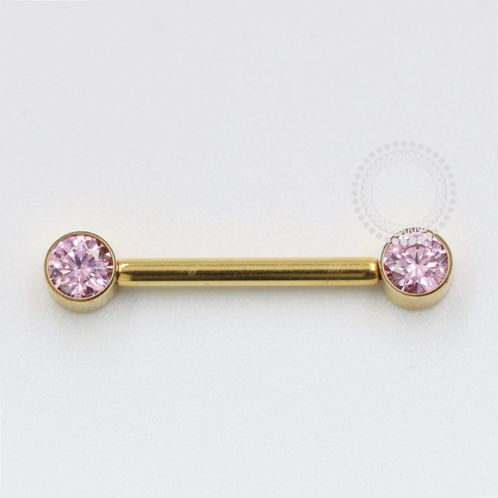 Titânio PVD Gold: É um material altamente durável e leve, que passa por um processo de deposição a vapor (PVD) para receber uma camada de ouro. Esse tratamento não só confere uma aparência luxuosa e brilhante, mas também aumenta a resistência à corrosão e ao desgaste. O titânio é conhecido por ser hipoalergênico, tornando-o uma excelente escolha para joias e piercings, especialmente para pessoas com pele sensível. A combinação de titânio com o acabamento PVD Gold oferece uma opção elegante e resistente, ideal para uso diário.