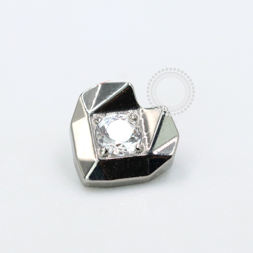 TN1044 Topo Coração Geométrico CZ Titânio ASTM F136