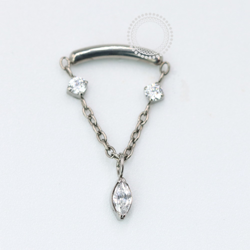 TN1062 Topo Arco Corrente 3 Navetes CZ Titânio ASTM F-136