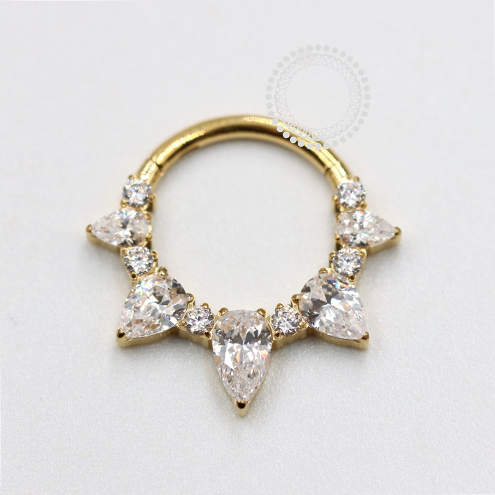 Descrição: Ideal para septo, daith, cartilagem, lóbulo, helix, entre outros piercings, oferecendo um ajuste confortável e seguro. É uma joia cheia de estilo.