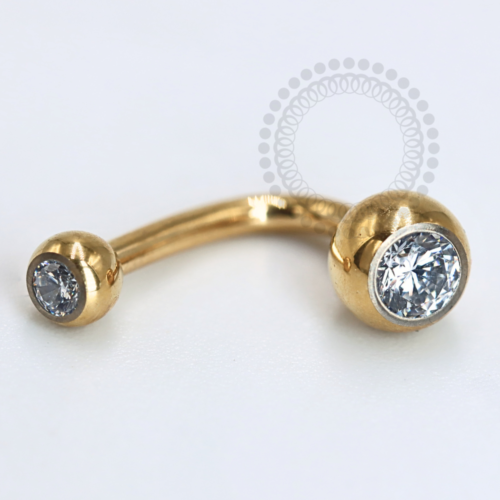 Descrição: Ideal para perfuração de umbigo, oferecendo um ajuste confortável e seguro. É uma joia cheia de estilo. O design curvado da haste permite um melhor encaixe na anatomia do corpo, minimizando o risco de irritação. Além disso, é fácil de limpar e manter, o que é essencial para garantir a saúde da perfuração.