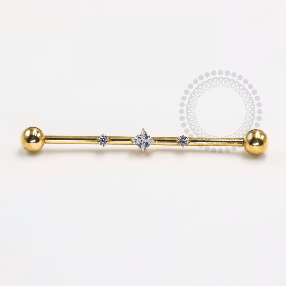 Descrição: Ideal para perfuração transversal, que é um tipo de perfuração que atravessa a cartilagem em dois lugares com ângulo reto, criando um efeito visual único. A rosca interna oferece uma fixação segura, permitindo a troca de topos de maneira fácil e prática. Esse tipo de piercing é popular por seu estilo diferenciado e pela possibilidade de personalização com diferentes designs de topos.