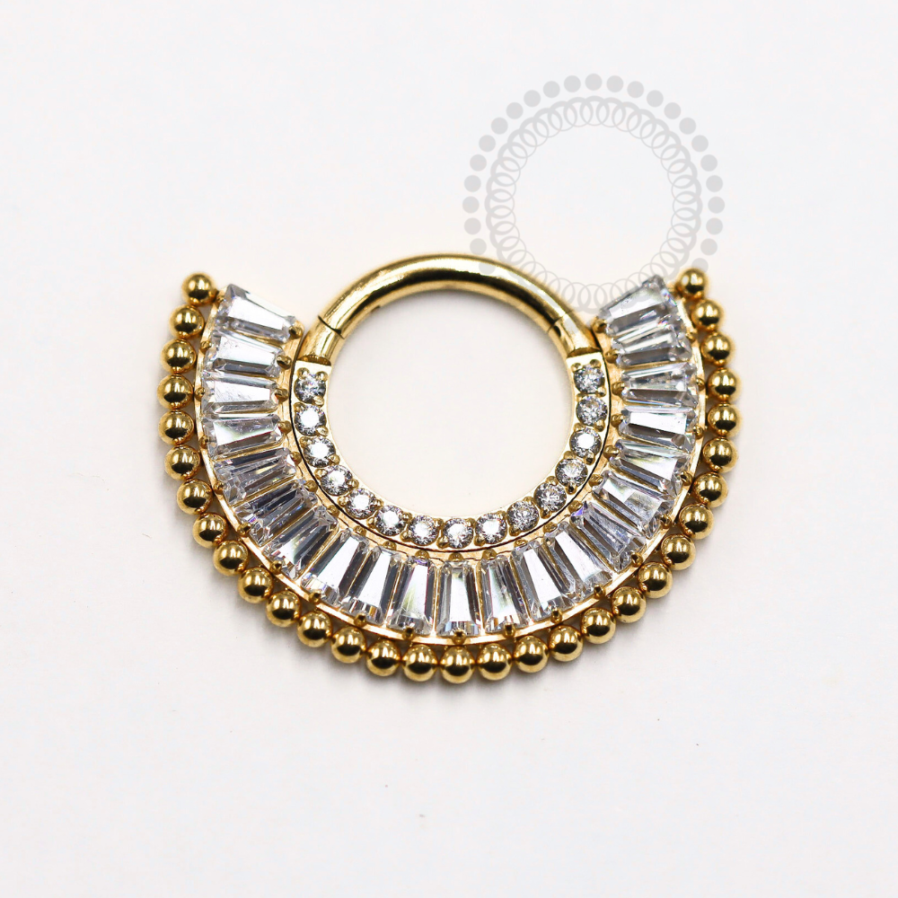 Descrição: Ideal para cartilagem, lóbulo, helix, entre outros piercings, oferecendo um ajuste confortável e seguro. É uma joia cheia de estilo.