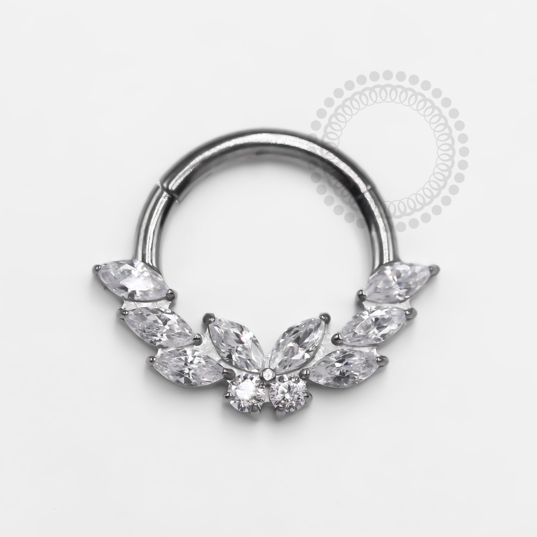 Descrição: Ideal para cartilagem, septo, daith, entre outros, oferecendo um ajuste confortável e seguro. É uma joia cheia de estilo