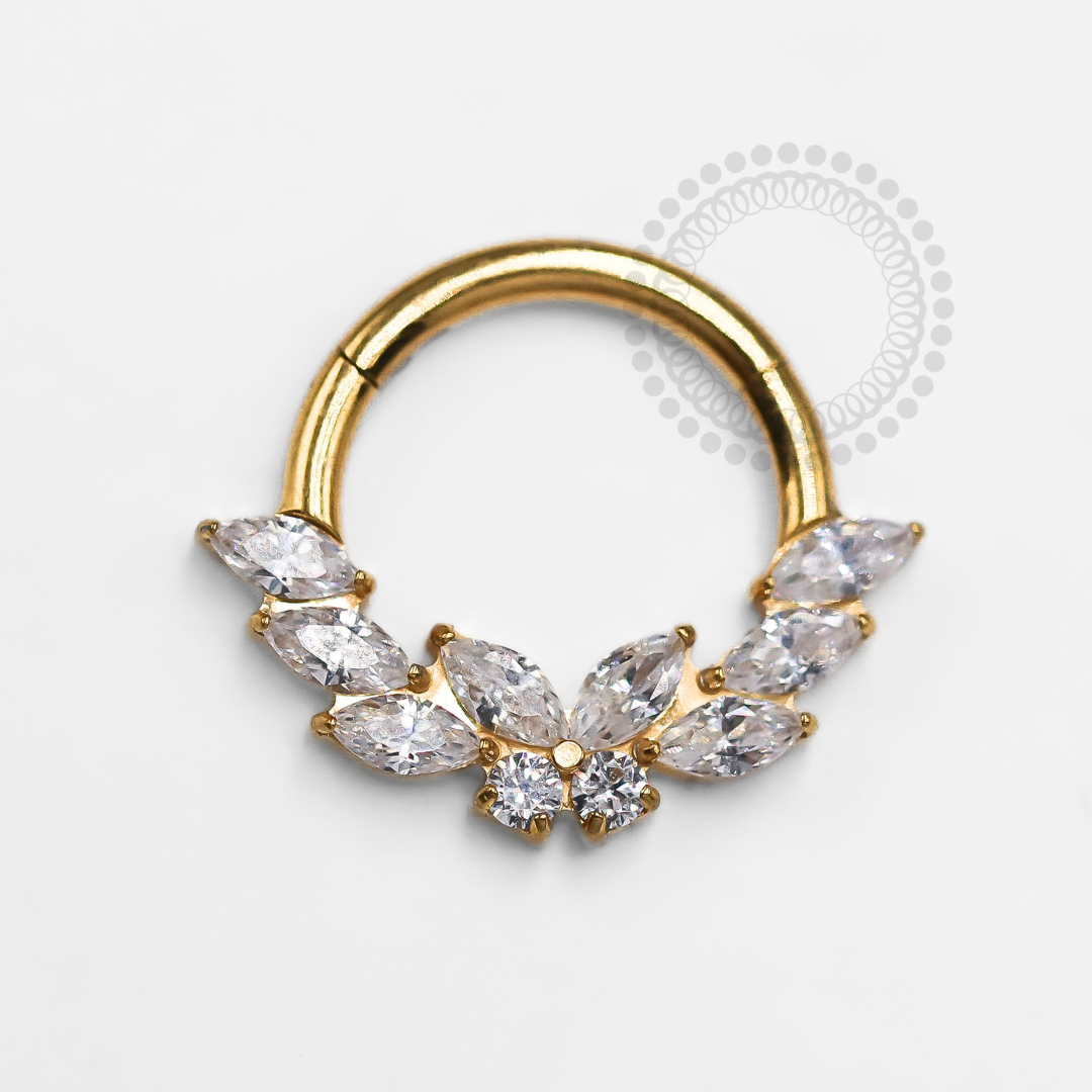 Descrição: Ideal para cartilagem, lóbulo, helix, entre outros piercings, oferecendo um ajuste confortável e seguro. É uma joia cheia de estilo.