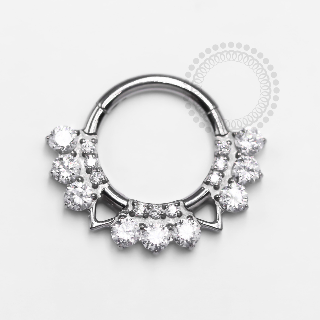 Descrição: Ideal para cartilagem, septo, daith, entre outros, oferecendo um ajuste confortável e seguro. É uma joia cheia de estilo