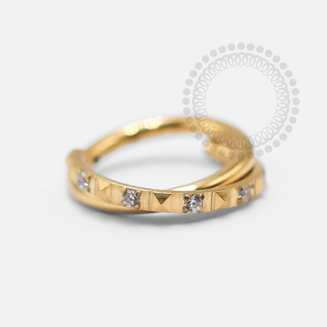 TN1322 Segmento Entrelaçado Geométrico CZ Titânio PVD Gold