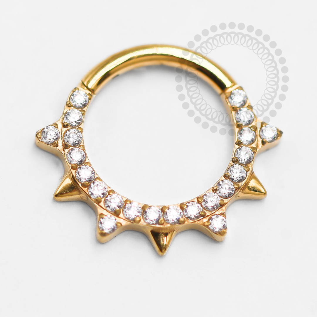Descrição: Ideal para septo, daith, cartilagem, lóbulo, helix, entre outros piercings, oferecendo um ajuste confortável e seguro. É uma joia cheia de estilo.