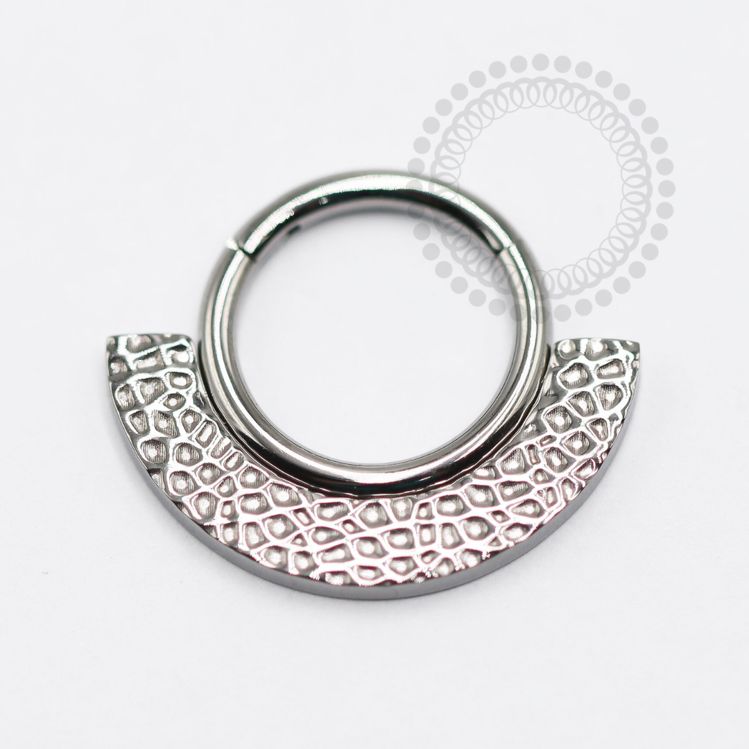 Descrição: Ideal para cartilagem, septo, daith, entre outros piercings, oferecendo um ajuste confortável e seguro. É uma joia cheia de estilo.