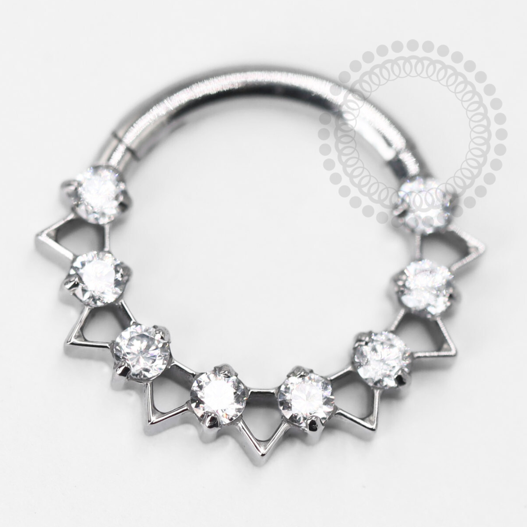 Descrição: Ideal para cartilagem, septo, daith, lóbulo, helix, entre outros piercings, oferecendo um ajuste confortável e seguro. É uma joia cheia de estilo.