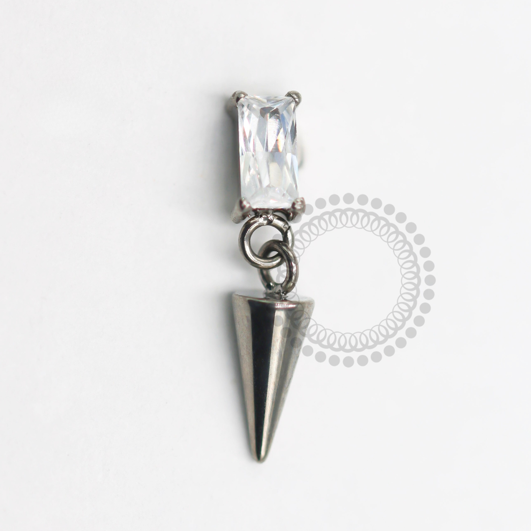 TN1570 Topo CZ Baguete Pingente Spike Titânio ASTM F-136