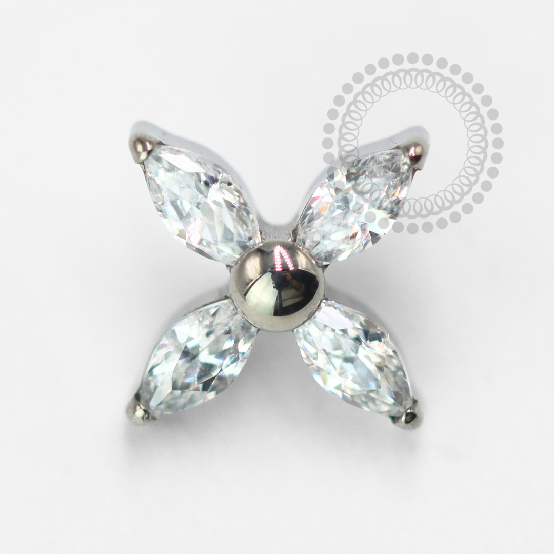 TN1576 Topo Flor 4 Pétalas Navetes Titânio ASTM F-136