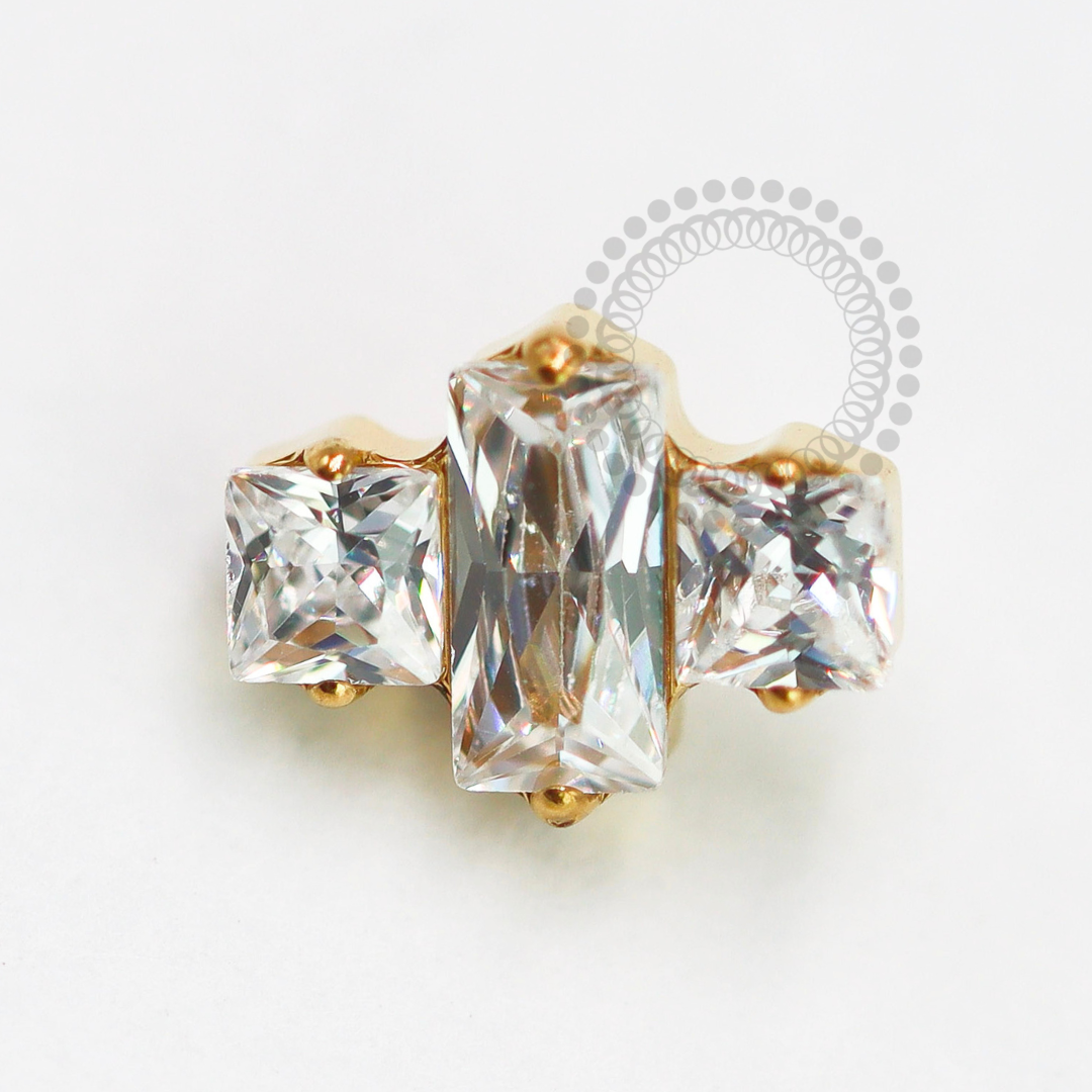 TN1582 Topo Trio Baguetes CZ Titânio PVD Gold
