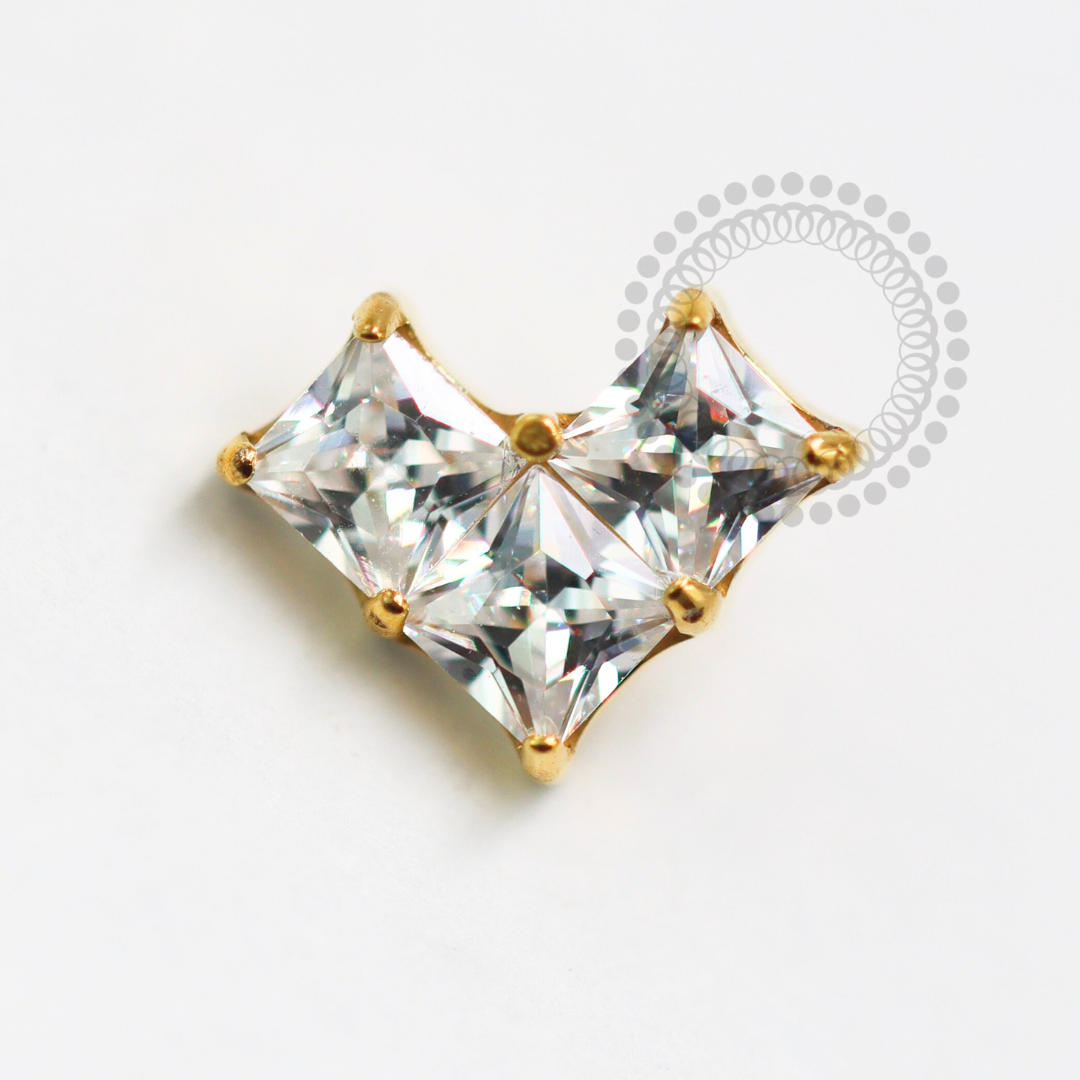 TN1588 Topo Coração CZ Quadradas Titânio PVD Gold
