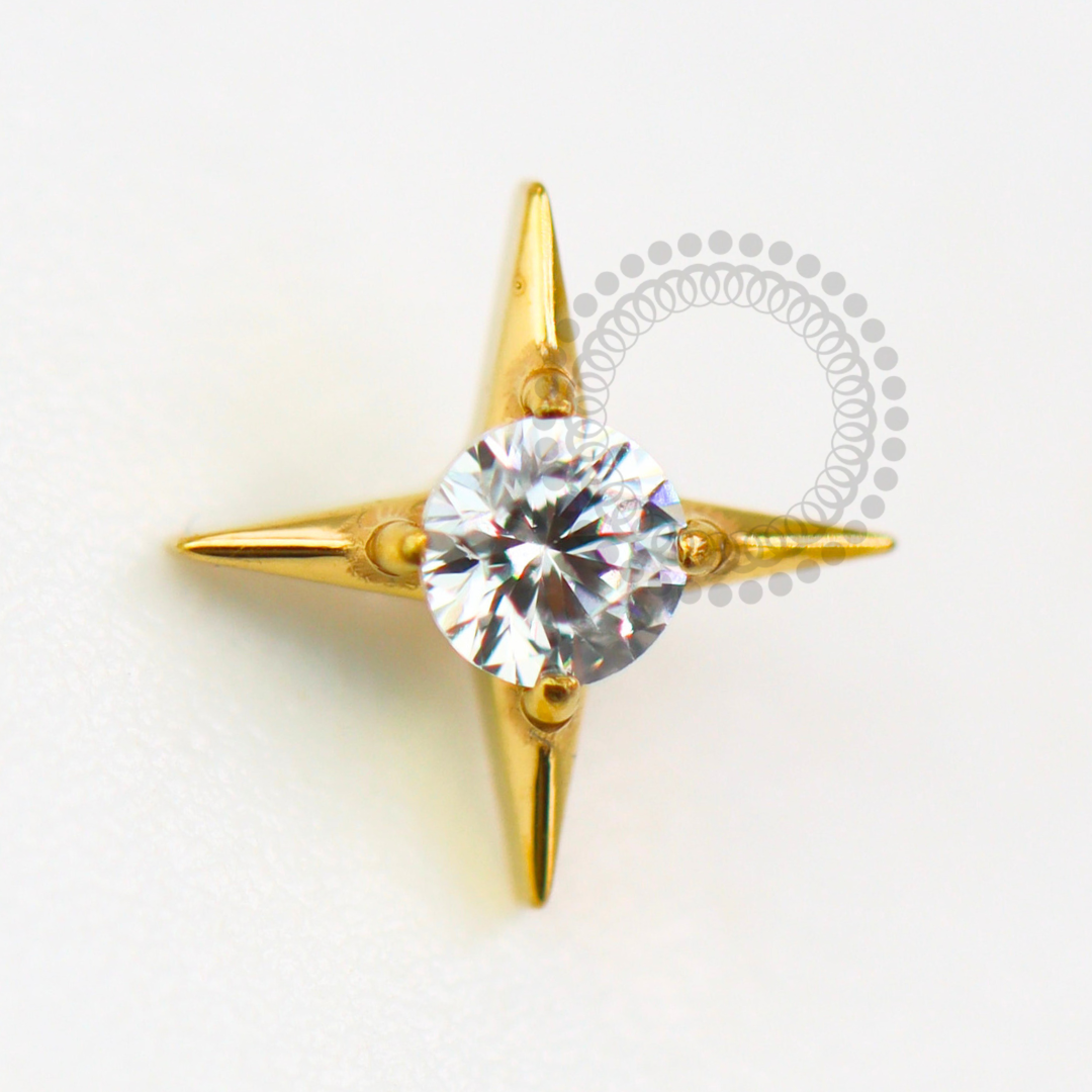 TN1605 Topo Estrela 4 Pontas CZ Titânio PVD Gold