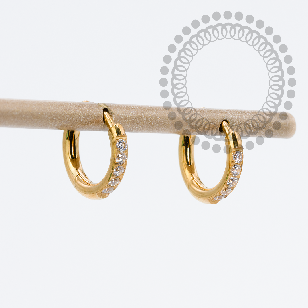 Titânio PVD Gold: O titânio PVD gold é um material altamente resistente, ideal para piercings devido à sua durabilidade e segurança. Ele recebe um revestimento dourado através do processo PVD (Physical Vapor Deposition), que garante cor intensa e longa duração. Hipoalergênico, é perfeito para peles sensíveis, evitando irritações. Além disso, é elegante e de alto desempenho.