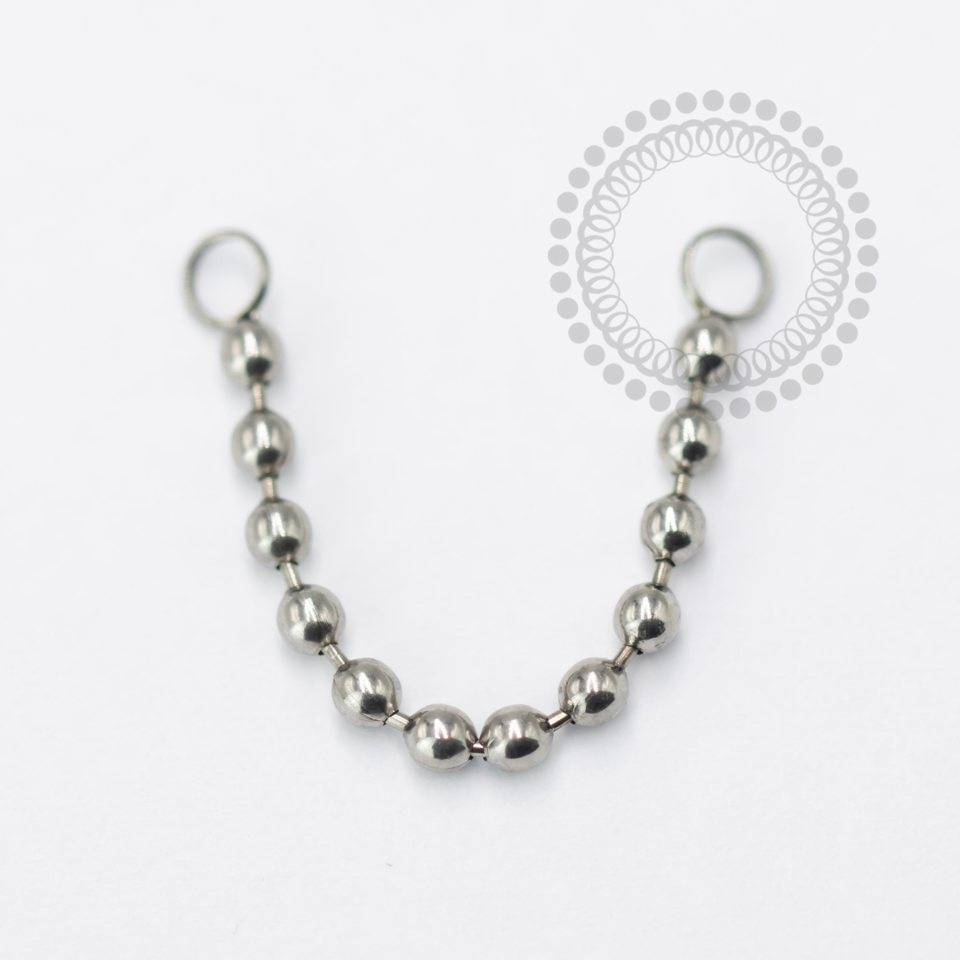 Aplicação Ideal: As correntes em Titânio ASTM F-136 são perfeitas para compor diversos projetos de piercings, oferecendo versatilidade e estilo. Exemplos de uso incluem a criação de brincos de pressão ou a conexão de piercings em áreas como o tragus e o lóbulo.