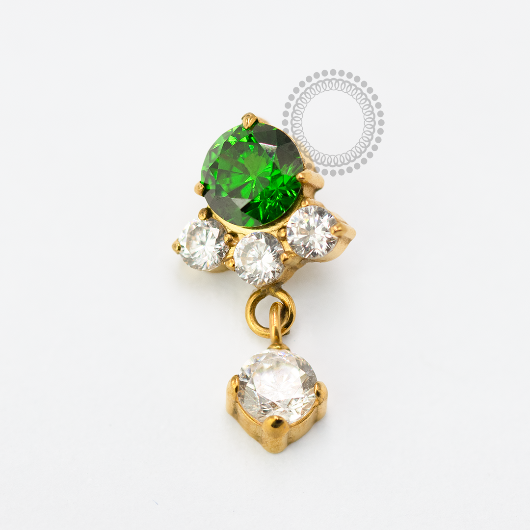 Titânio PVD Gold: É um material altamente durável e leve, que passa por um processo de deposição a vapor (PVD) para receber uma camada de ouro. Esse tratamento não só confere uma aparência luxuosa e brilhante, mas também aumenta a resistência à corrosão e ao desgaste. O titânio é conhecido por ser hipoalergênico, tornando-o uma excelente escolha para joias e piercings, especialmente para pessoas com pele sensível. A combinação de titânio com o acabamento PVD Gold oferece uma opção elegante e resistente, ideal para uso diário.