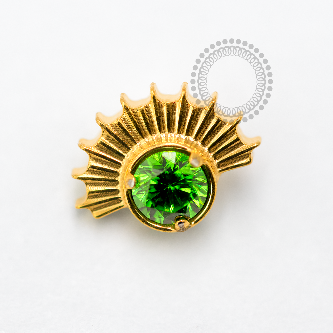 TN1689 Topo CZ Esmeralda Raios Titânio PVD Gold