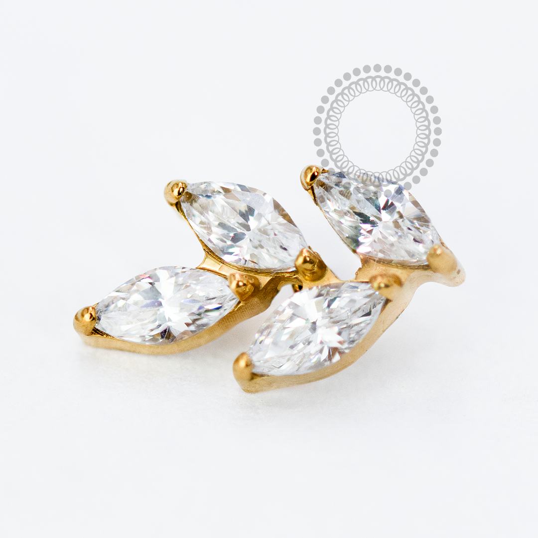 TN1714 Topo Galho 4 Folhas CZ Titânio PVD Gold