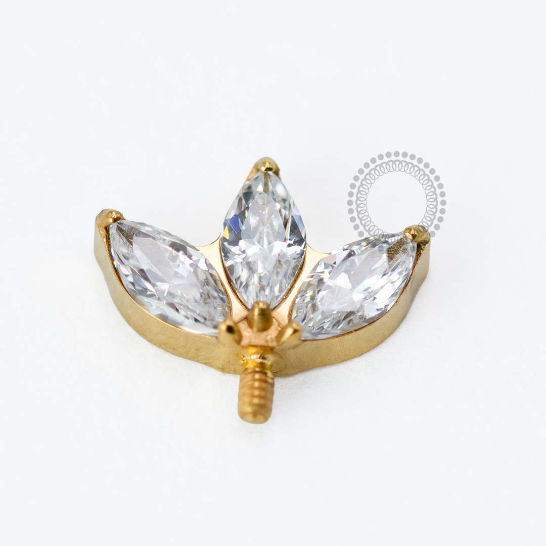 Titânio PVD Gold: É um material altamente durável e leve, que passa por um processo de deposição a vapor (PVD) para receber uma camada de ouro. Esse tratamento não só confere uma aparência luxuosa e brilhante, mas também aumenta a resistência à corrosão e ao desgaste. O titânio é conhecido por ser hipoalergênico, tornando-o uma excelente escolha para joias e piercings, especialmente para pessoas com pele sensível. A combinação de titânio com o acabamento PVD Gold oferece uma opção elegante e resistente, ideal para uso diário.