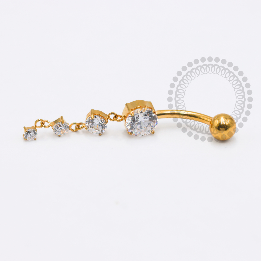 Descrição: Ideal para perfuração de umbigo, oferecendo um ajuste confortável e seguro. É uma joia cheia de estilo. O design curvado da haste permite um melhor encaixe na anatomia do corpo, minimizando o risco de irritação. Além disso, é fácil de limpar e manter, o que é essencial para garantir a saúde da perfuração.