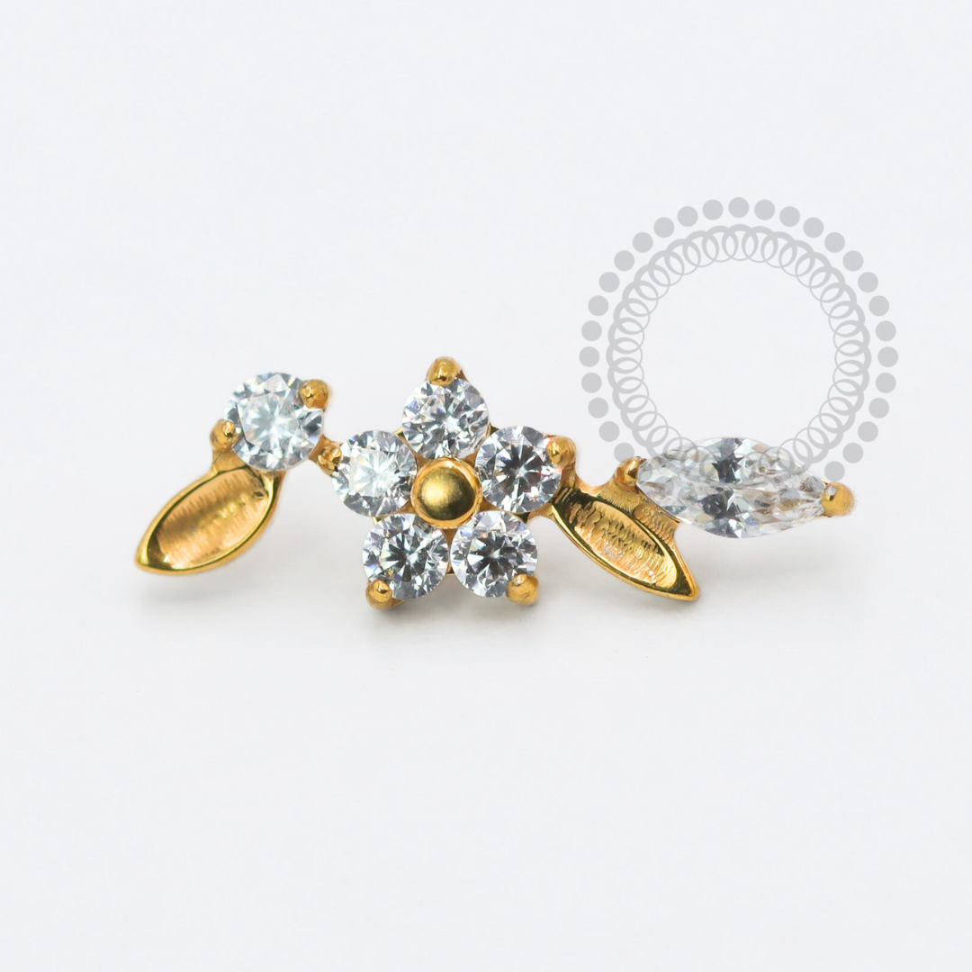 TN1768 Topo Cluster Flor CZ Central Titânio PVD Gold