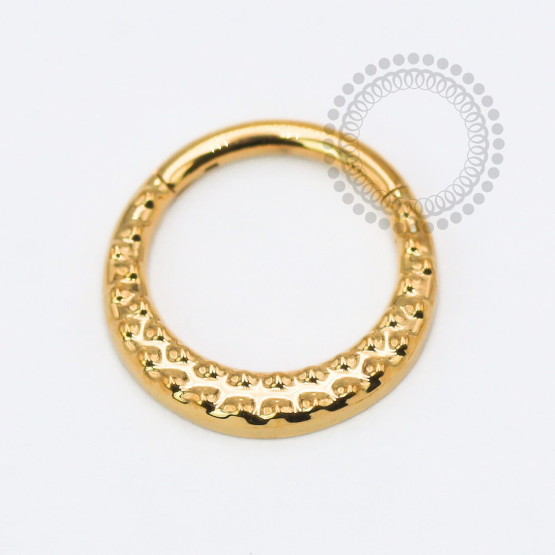 Descrição: Ideal para cartilagem, daith, septo, entre outros piercings, oferecendo um ajuste confortável e seguro. É uma joia cheia de estilo.