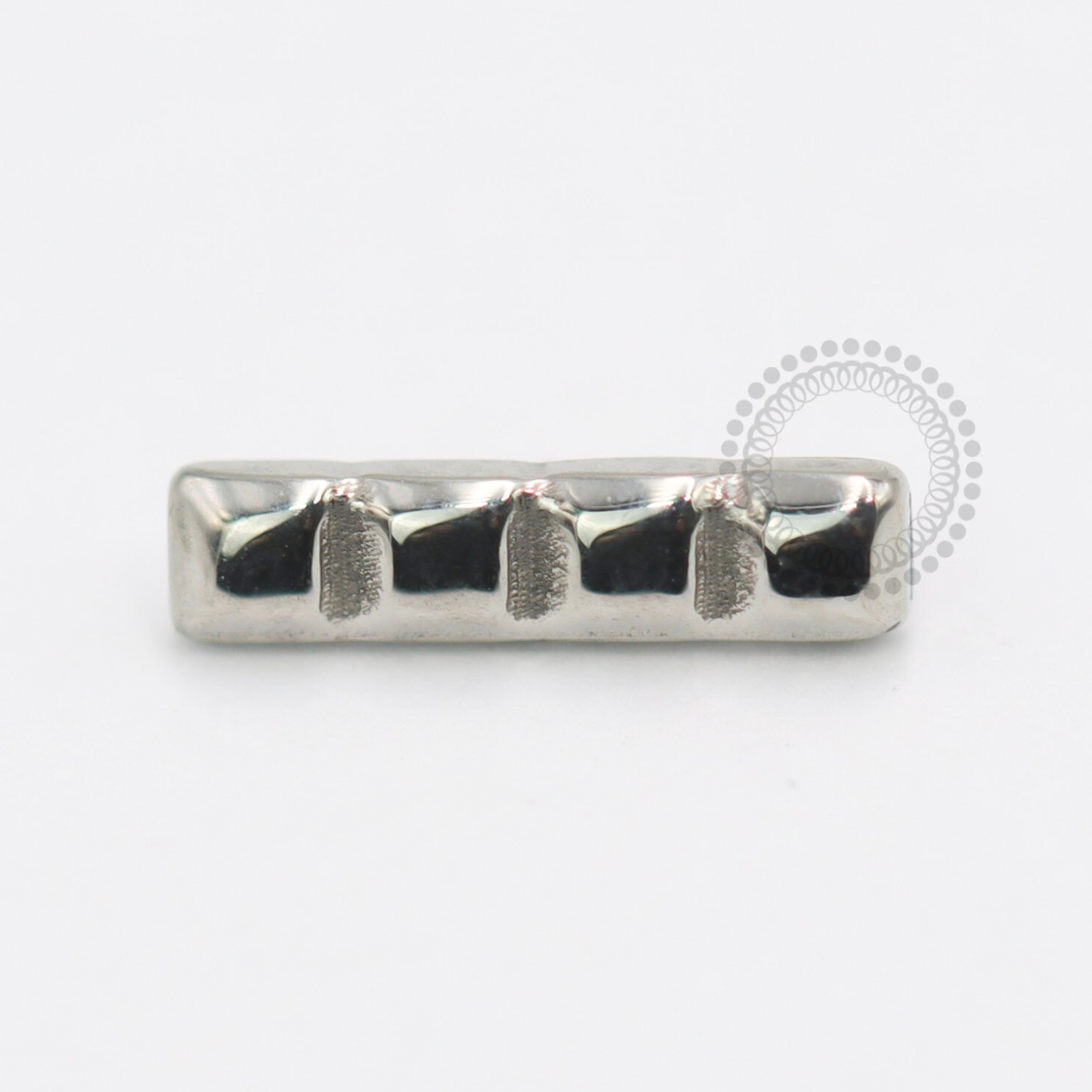 • Titânio ASTM F-136: Este tipo de titânio é amplamente utilizado em implantes médicos devido à sua biocompatibilidade, leveza e resistência à corrosão. Por não conter níquel, é seguro para a pele e ideal para pessoas sensíveis a alergias. Além disso, é a melhor opção para primeiras perfurações, pois promove uma cicatrização muito mais rápida em comparação com o aço 316L. O titânio também pode ser anodizado em várias cores, tornando-se uma excelente escolha para quem busca adicionar mais estilo às suas joias.