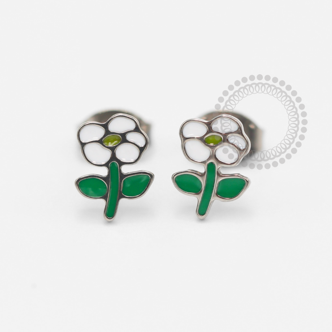 TN1864 Brinco Flor Resinada Titânio ASTM F-136