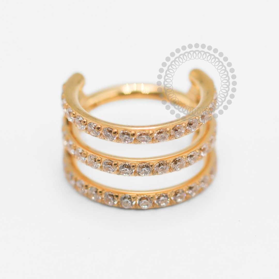 TN1904 Segmento Triplo Cravejado Titânio PVD Gold