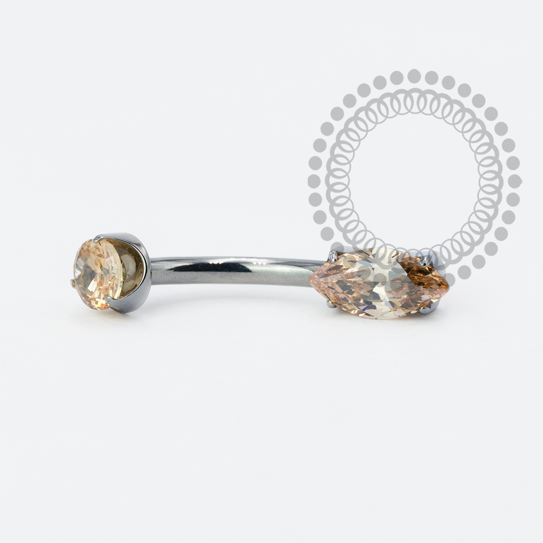 TN1928 Navel Zircônia Oval Champanhe Titânio ASTM F-136