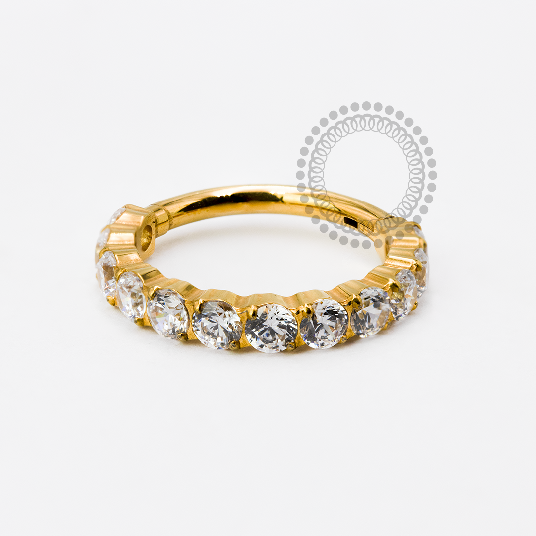 TN1939 Segmento Cravejado 12 CZ Titânio PVD Gold